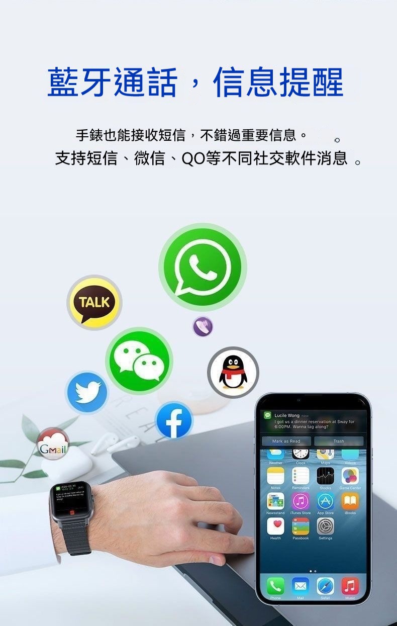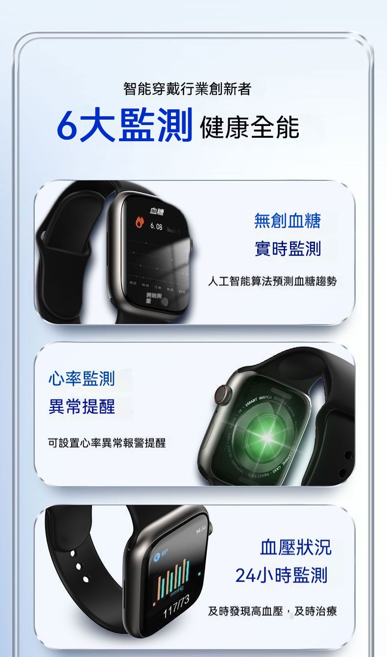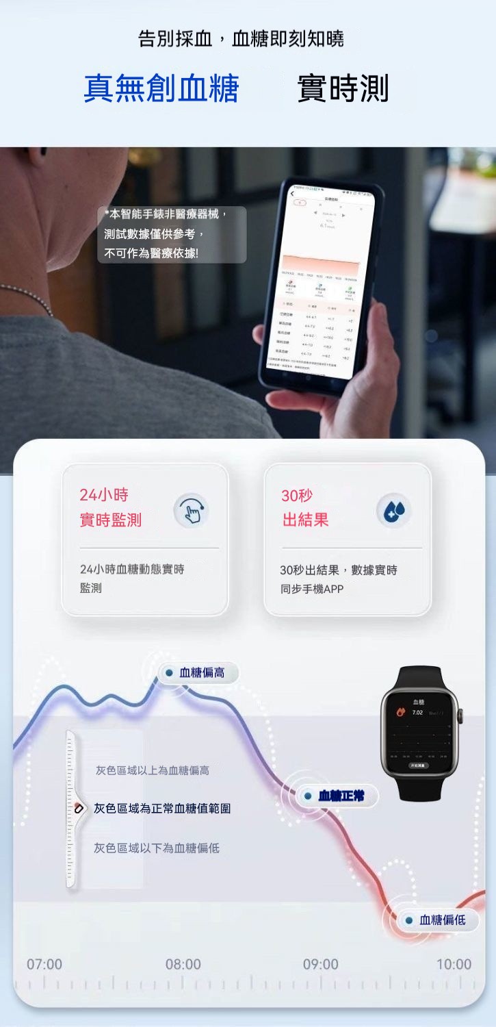 【科技躍遷,健康盡在掌握】這款智慧手表采用最新無創技術✨,實時監測血糖水平🩸,精准無誤。 ⚖️ 【尿酸監測,飲食無憂】📊尿酸變化一目了然【自動血壓監測,守護心血管❤️ 】 手錶自動定時测量,數據即時同步📲,異常提醒⚠️,爲妳的心血管健康築起堅固防線! 【💤 深度睡眠監測,好夢連連 】🌙睡眠質量決定生活質量!智能分析的睡眠周期,深度、淺睡壹目了然📈,助妳調整作息 【📱 智能互聯,生活更精彩】🔗無缝連接手機,信息提醒📨、音樂播放🎧、運動記錄🏃♀️.壹表在手,便捷生活全搞定! 【送禮自用,兩相宜】⌚時尚設計,