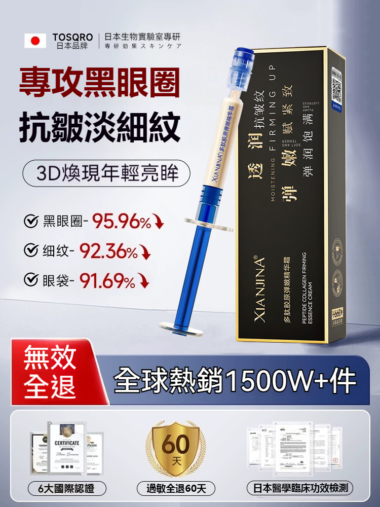 5分鐘前【陳美鳳真情推薦】【日本正品】多肽膠原微針精華霜 專攻大眼袋/眼紋/皺紋 - 團購獨享價【買5送5】十盒装-NT$1799[美鳳強烈推薦]